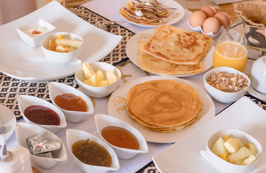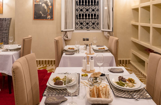 We are renowned for the cuisine in our restaurant, where we offer an innovative European-Moroccan fusion, based on local produce and flavours - a surprising change from the usual fare of Tagine and Couscous.