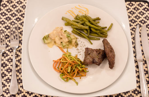 We offer simple but delicious lunches, and in the evening, we offer guests a varied menu which changes every day